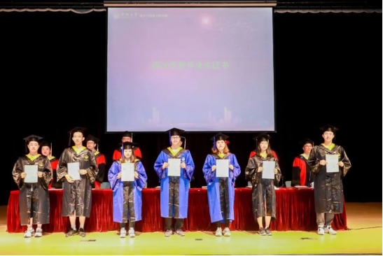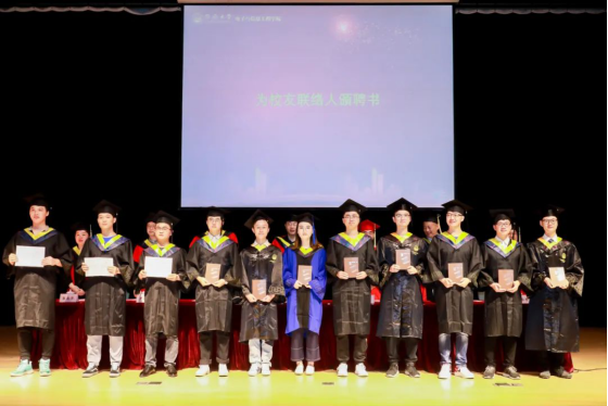 优秀毕业生”称号的优秀电信人,校友联络人也上台接受嘉宾颁发聘书,今后各班级的同学将通过联络人使每一位毕业生仍然保持彼此之间以及和母校的联系。