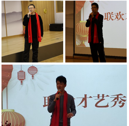 随后,在热烈喜庆的气氛中,师生共同献演了一场精彩的才艺秀。2019级博士生徐忠国为大家献曲《鸿雁》,2018级本科生徐瑞杰表演了年味儿脱口秀,最后尹学锋副院长为大家献唱《Hotel California》,把现场气氛推向了高潮。