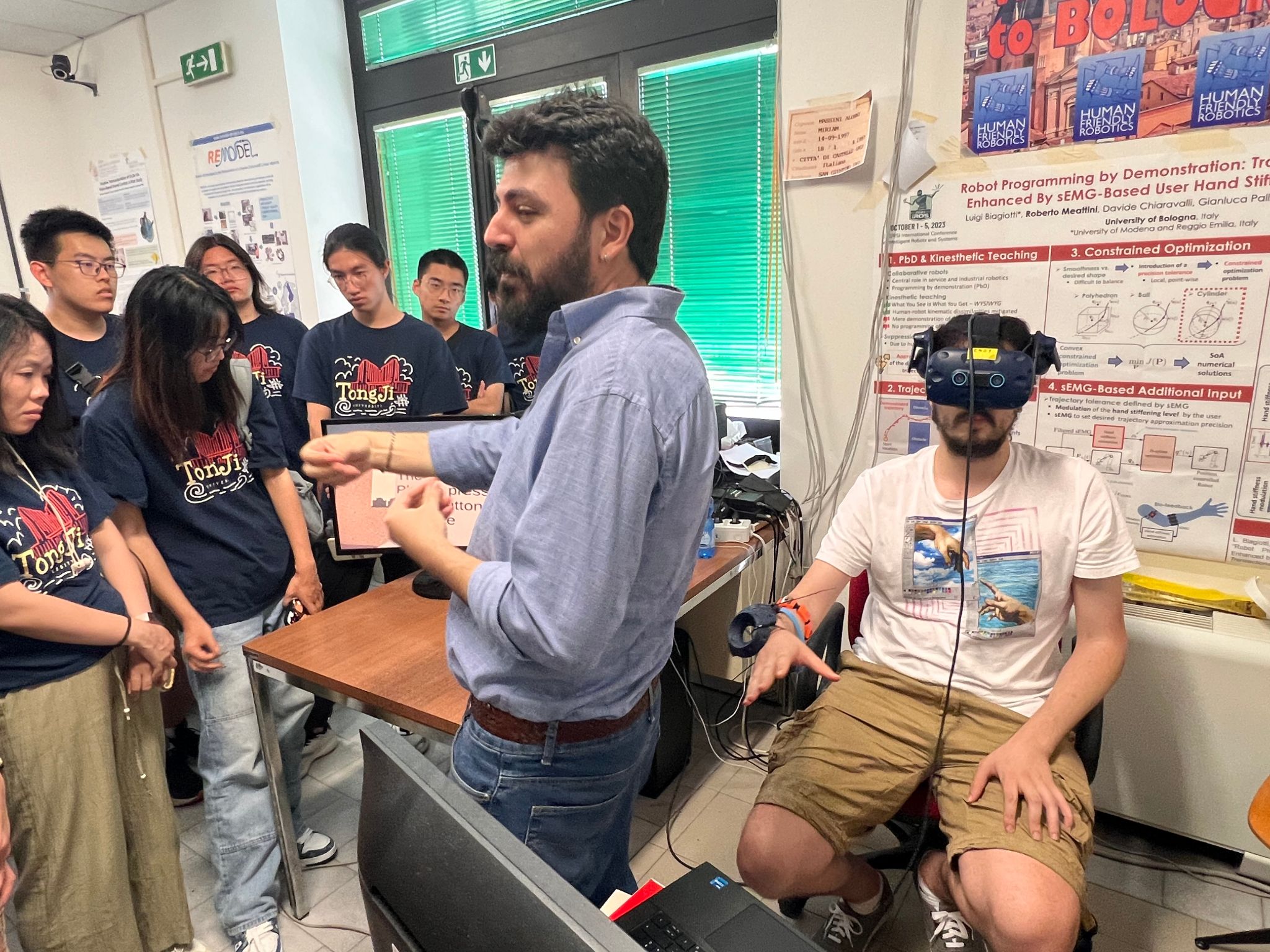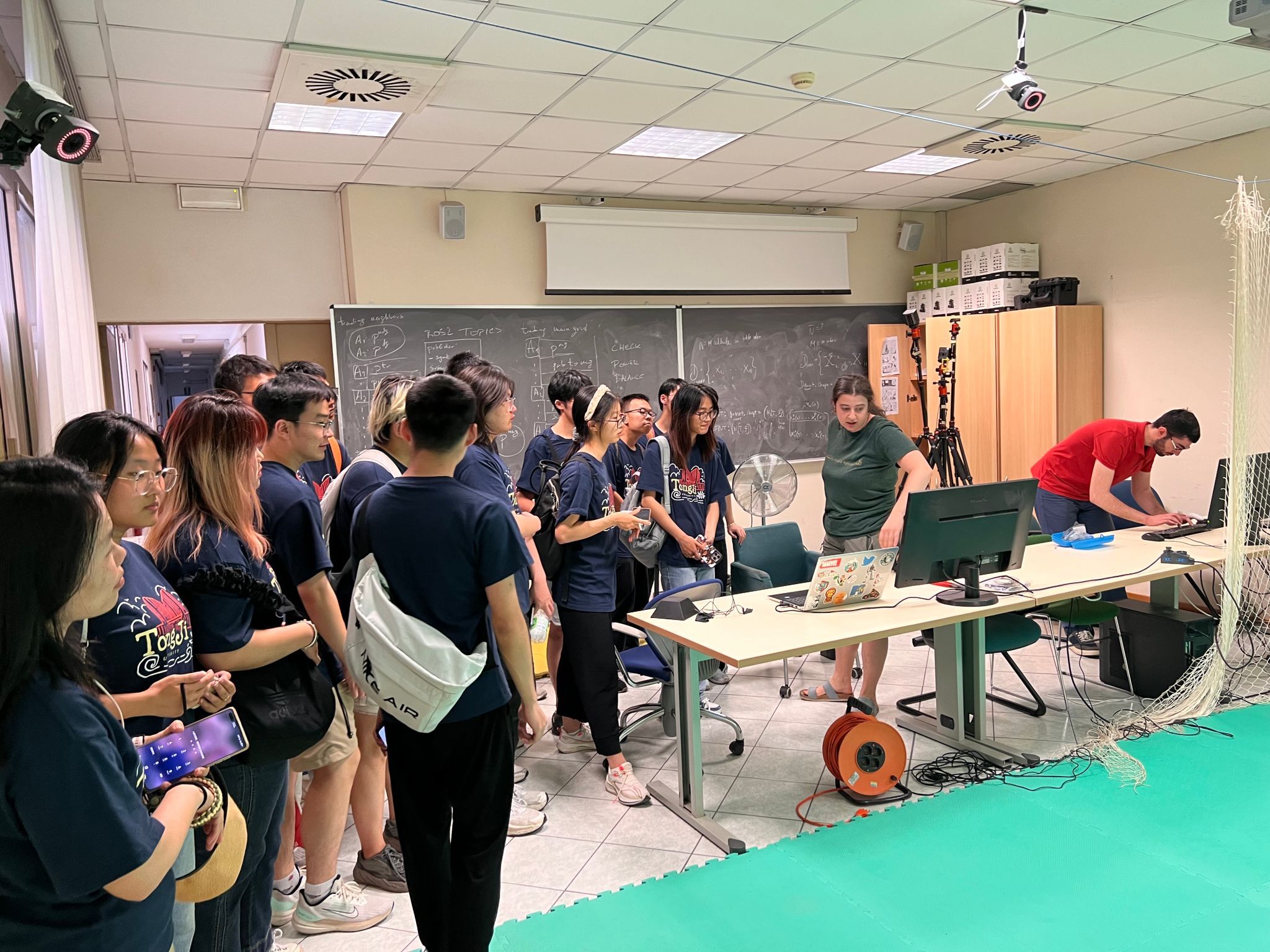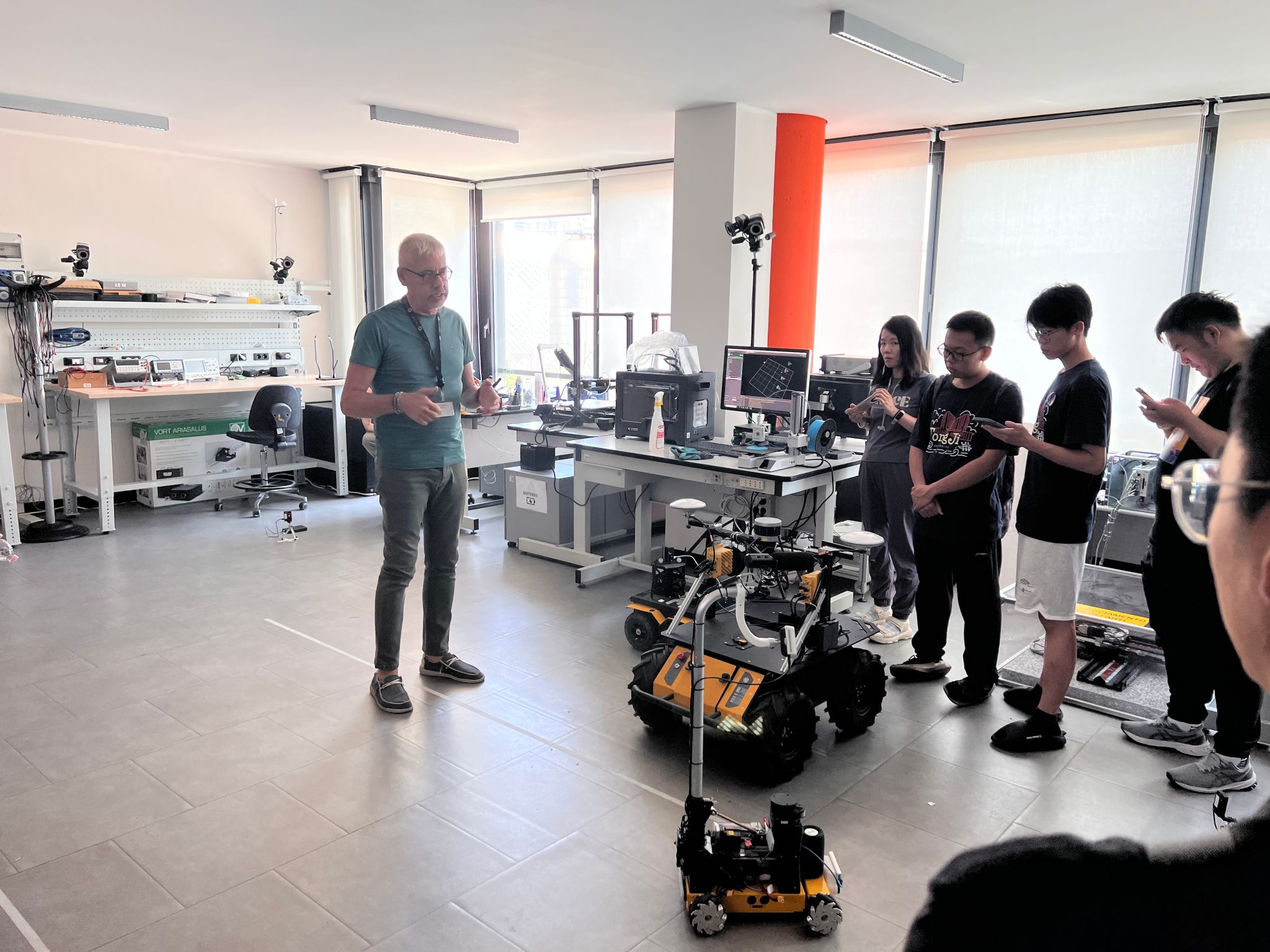 本次学习交流的最后一站来到博洛尼亚。在2007年,我校开始与博洛尼亚大学签署合作协议,开展本科双学位ALMATONG项目。博洛尼亚大学是世界第一所大学,无线电之父“马可尼”在博洛尼亚大学实验室发明了无线电通信装置。师生代表团本次访问的电气、电子和信息工程系(Department of Electrical, Electronic, and Information Engineering , DEI)在通信技术、信号处理和信息技术领域享有盛誉。该系致力于推动无线通信、光通信、网络安全和物联网等领域的前沿研究,培养能够应对现代通信挑战的高素质工程人才。首先,博洛尼亚大学自动化工程专业的Prof. Giuseppe Notarstefano及其研究团队向师生代表团展示了他们在机器人领域的最新研究成果。讲座后的参观涵盖了博洛尼亚大学自动化工程专业的多个实验室,分别展示了该专业在自动控制和系统工程方面的前沿研究和应用,包括路径规划、环境感知等方面的技术。接着,由来自博洛尼亚大学电信工程专业的Prof. Diego Masotti及其研究团队向师生代表团展示了他们在无线通信领域的最新研究成果。在随后的参观中,Prof. Diego Masotti团队带领师生代表团参观光纤通信实验室、路由交换实验中心以及智能天线设计中心。