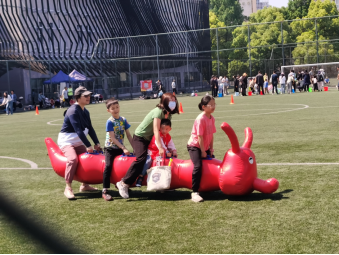 亲子项目现场,趣味毛毛虫、玩转地球、迷你障碍赛等吸引了众多家庭参与。特别是趣味毛毛虫项目最为热闹,现场欢声笑语,小朋友们奋勇争先,观众也为参赛家庭的精彩表现喝彩助威。