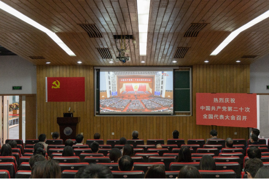 精心组织师生收看二十大开幕会。在智信馆117报告厅开设集中观看学习分会场,学院党政班子成员、基层党支部书记、师生党员线下集中观看学习,各支部组织师生认真线上观看。