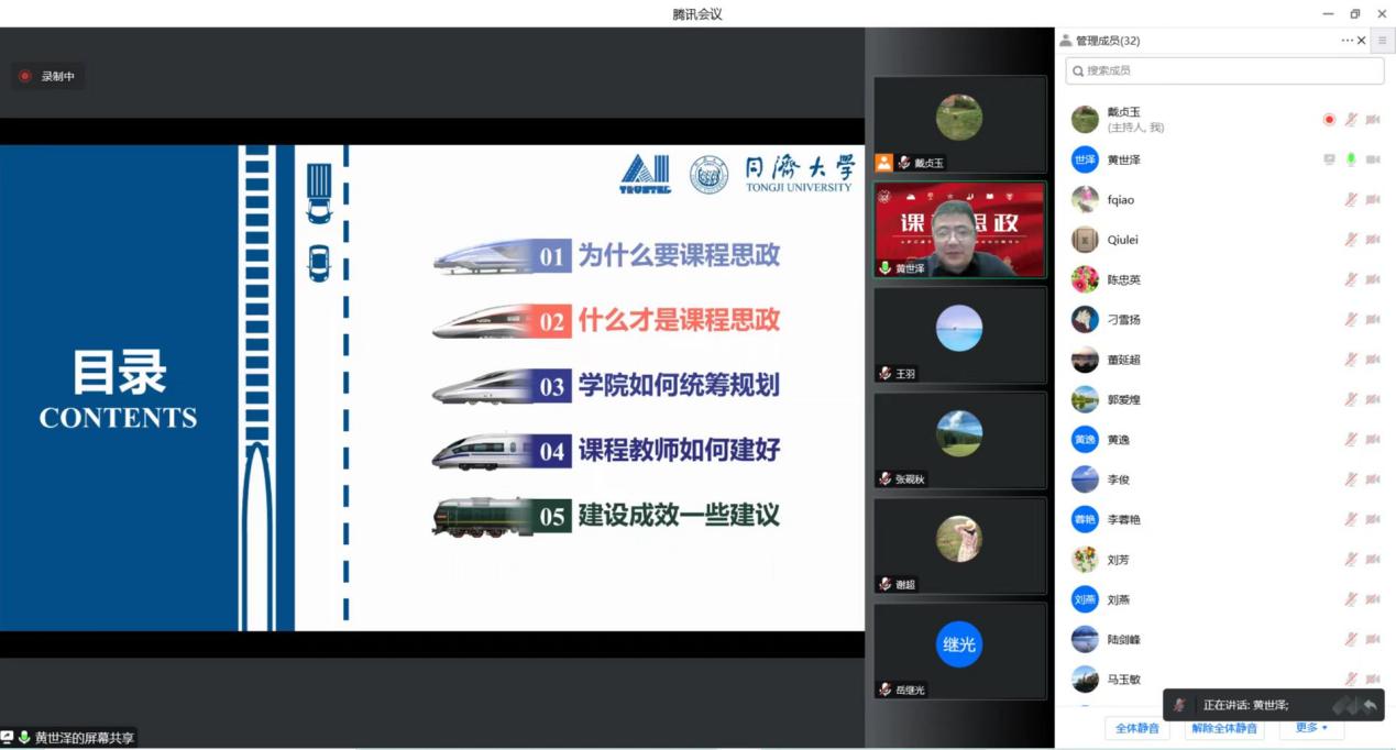 学院副院长周俊鹤在致辞中表示,近年来学校持续推进课程思政重点课题研究和课程思政改革,各二级学院也在全面落实课程思政教育教学改革。目前交通学院已探索了一套结合学科专业特色的课程思政实施体系,并积累了丰富的实践经验。非常荣幸邀请交通学院为西瓜视频