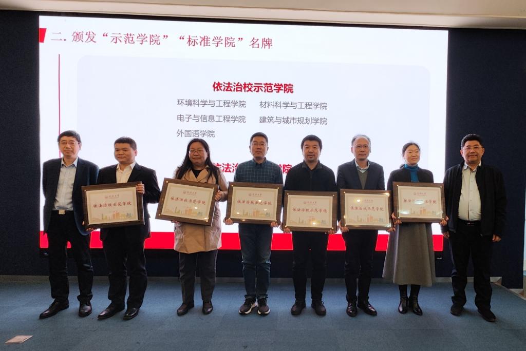 入选“依法治校示范学院”。常务副校长吕培明、党委副书记吴广明为获评学院颁发名牌。