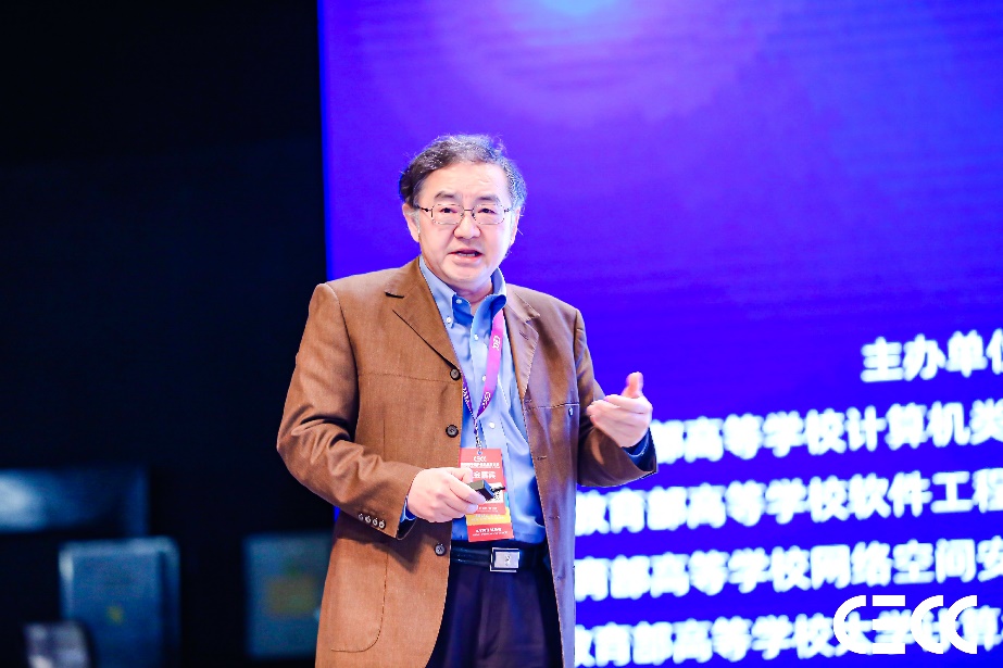 会议由大会共同主席、教育部高等学校大学计算机课程教学指导委员会主任委员、我校校长郑庆华教授主持。中国工程院院士、教育部高等学校计算机类专业教学指导委员会委员、我校蒋昌俊教授应邀作了“数字时代计算机拔尖人才培养的‘一体两翼双引擎’模式”的大会主题报告,紧密结合西瓜视频