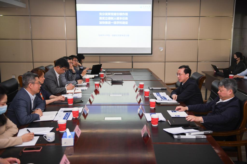 调研,学院院长陈虹、党委书记王峻代表学院作工作汇报,学院党政班子成员参加会议。