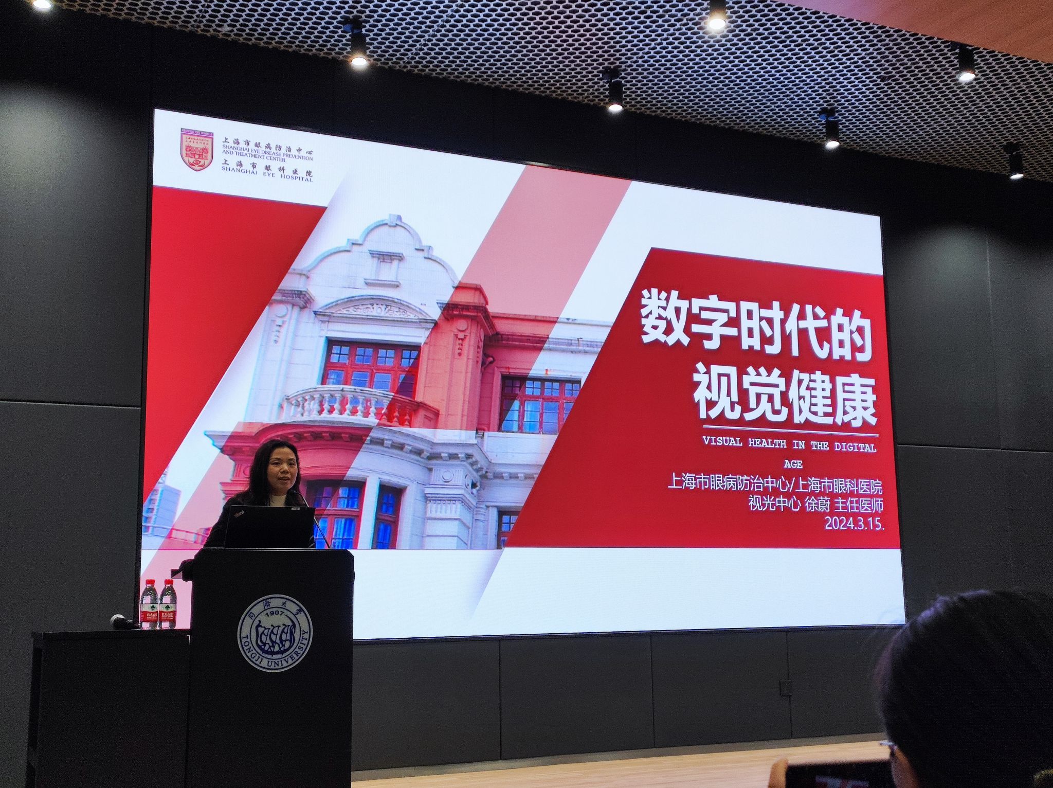 上海市眼病防治中心眼科视光党支部书记、上海市眼病防治中心(上海市眼科医院)副主任徐蔚作了题为《数字时代的视觉健康》的讲座。徐蔚主任医师结合临床案例,深入浅出地讲解了干眼症的成因、症状及综合治疗方法,并针对师生们长时间在电脑前工作的现状,提出了合理的用眼建议和防护措施。针对师生们关心的眼健康方面的疑问,徐蔚主任医师耐心解答,提供了专业的指导和建议。师生们纷纷表示受益匪浅,对眼保健知识健康有了更全面的了解,提升了眼健康意识。