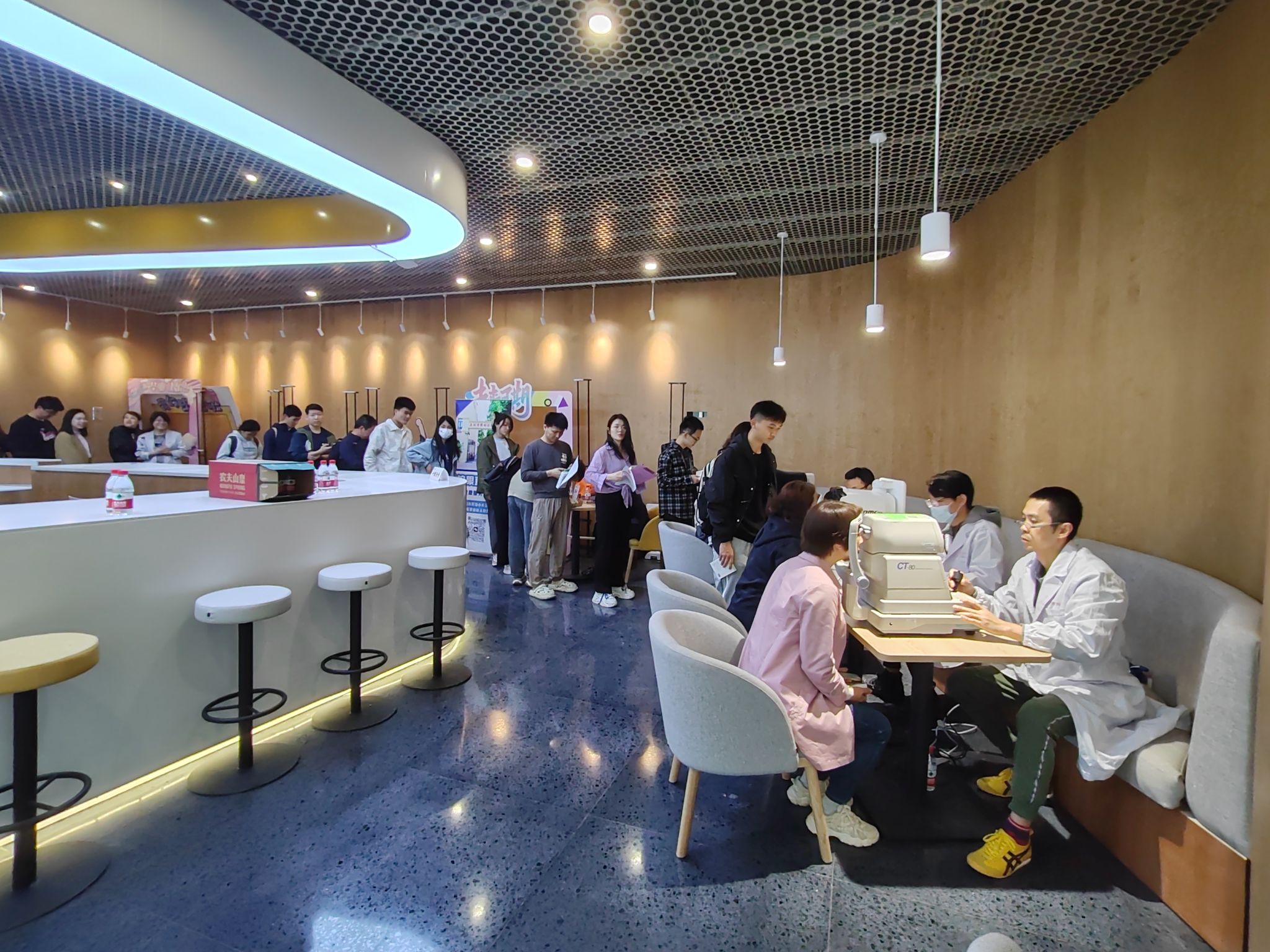 讲座结束后,朱剑锋主任、徐蔚主任医师、王默主治医师等专家在学院大厅开展眼健康义诊,为学院师生开展眼底照相、电脑验光、眼压测量、裂隙灯检查和专业咨询,根据每位师生的现场检查单,有针对性地提出诊疗建议。专家们细心讲解学习和工作中如何注意眼部健康,一一解答师生们提出的各类疑惑,现场气氛热烈而有序。