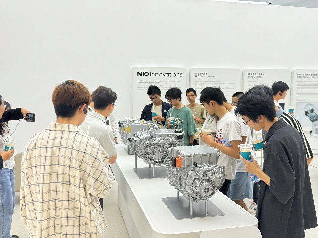 同学们还在蔚来交付中心了解电动汽车内部的永磁同步电机结构,并现场试乘多种车型。通过本次参访,同学们更加直观地了解了蔚来的产品与西瓜视频,激发了学生们加入蔚来的热情。