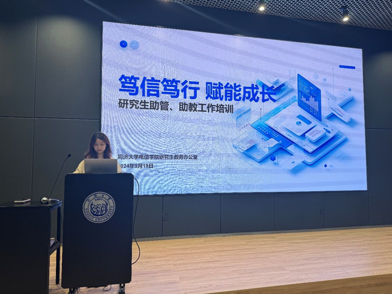 于9月19日在智信馆117报告厅召开2024学年研究生助管助教岗前培训会。会议由研究生教务办公室曹雅雯老师主持,研究生教务办公室主管张云霞、副主管任倩及各系教务老师、全体助管助教参加。