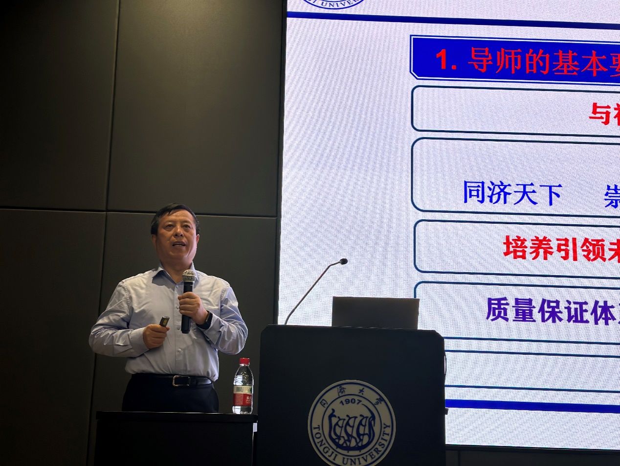 副院长周俊鹤教授围绕研究生培养体系与质量保障机制作专题分享。他重点介绍了学院在招生与导师管理方面的改革举措:一是完善多元化招生模式,统筹学术型与专业型人才培养;二是建立动态导师资格评估机制,优化导师梯队建设;三是强化企业协同支持,拓展校企联合培养路径。周俊鹤表示,针对培养过程,学院实施全过程闭环管理,确保学生培养质量。周俊鹤强调,在研究生教育高质量发展的总体要求下,学院对学生培养环节高度重视,明确导师主体责任,强化全过程质量管理,形成全院协同育人的良好机制。