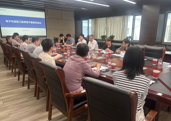 宣布关于副院长职务任免的通知。学院党委书记王瀚漓、院长陈虹出席会议,学院其他党政班子成员、教工党支部书记、各系(中心)主任及教师代表参加了会议。