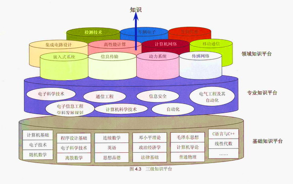 领域知识平台主要针对研究生教育的知识平台,基础平台和专业知识平台是面向本科教育的教学平台。这三级知识平台层层递进,构成电信学院的课程教学体系。