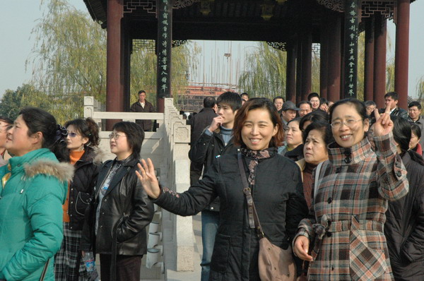 午饭后,冬天里暖暖的阳光洒在人们的身上,使人们心情舒畅,尽情浏览冬季江南水乡的景象。沿着古运河边,教工们领略了先人们开创的世上第一条人工大运河;走在七里山塘古色古香的老街上,大家目睹了中华灿烂的文明史。悠久的文化,现代的文明,和谐的景象,休闲式的旅游,使教职工的紧张的心情得到有效的缓解。(刘 峰)