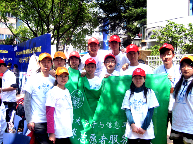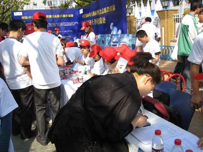 世博志愿者中队积极响应校志愿者大队的号召,组织了12名志愿者在现场参与世博志愿者的宣传和招募活动。活动现场气氛热烈,吸引了大学生、居委会民众、中学生以及外国留学生的积极报名。大家都对世博会的召开充满了期待,并希望能加入世博志愿者的行列,为世博贡献自己的热情,共同绘就杨浦的美好,共同见证世博的精彩!(程 莉)