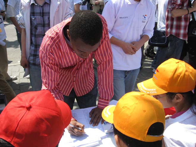 5月1日是上海世博会开幕倒计时1周年。当日上午,2010年上海世博会志愿者招募启动仪式分别在东方明珠电视塔、徐汇区及杨浦区同时举行。由上海市世博会筹办工作领导小组志愿者组主办,中共上海市杨浦区委、上海市杨浦区人民政府与我校共同承办的“中国2010年上海世博会志愿者招募(杨浦•同济)启动仪式”暨世博招募工作站揭牌仪式在四平社区文化活动中心举行。