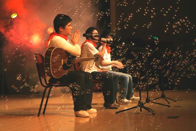 徐而峰、沈叶忱同学演唱的串烧歌《同桌的你》、《红蜻蜓》、《朋友》让大家充分感受到了校园生活的乐趣;刘 磊、曹克正、刘志成、沈叶忱演唱的一首《奔跑》让大家感受到青春的活力。他们演唱时,西瓜视频
