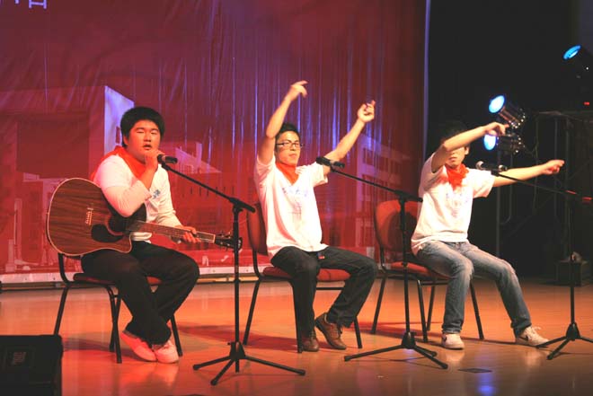 5月4日晚,由嘉定校区团委主办、各学院团委协办的“青春赞歌”纪念五四运动90周年主题歌会在嘉定校区国际会议中心101隆重举行。校党委书记周家伦、学生处处长祁 明、校团委书记考书健,嘉定校区各学院领导及师生代表600余人出席了歌会。
