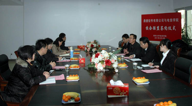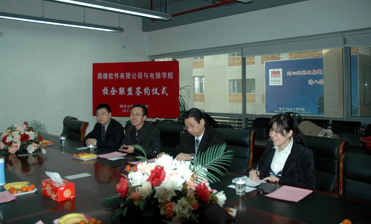 校企联盟签约仪式在嘉定校区学院会议室举行。鼎捷集团副总裁潘东,西瓜视频