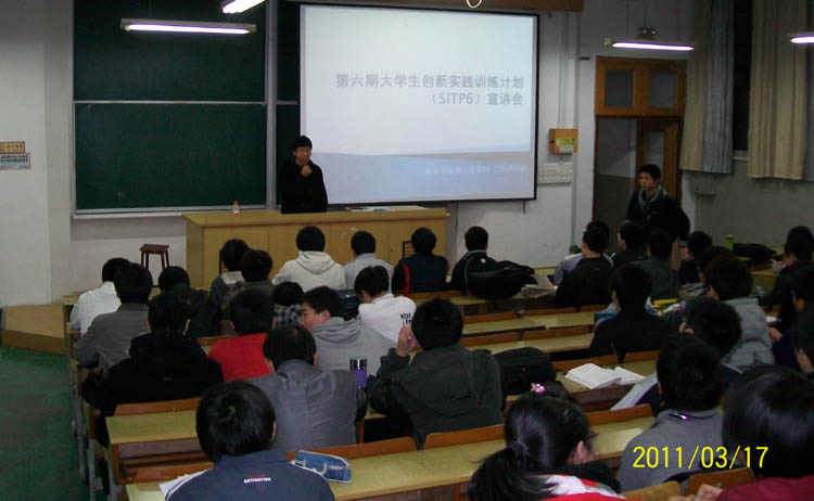 第七届“E海扬帆”大学生科技节拉开帷幕。作为科技节“励志 博学 讲坛版”的第一个活动――“第六期大学生创新训练计划(SITP)宣讲会”,3月17日晚在四平路校区南楼101教室举行,活动吸引了近200名同学参加。