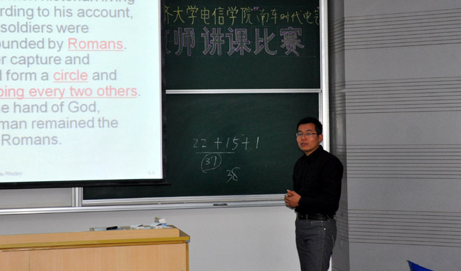 “南车时代电气杯”青年教师讲课竞赛在嘉定校区举行。各系共选出19位青年教师参加了比赛。