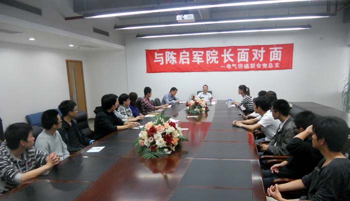 日前,电气信通联合党总支组织10级研究生召开“与陈启军院长面对面”座谈会,就当前存在的问题交流了想法,增进彼此的了解。