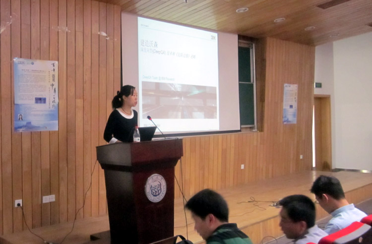 来自IBM中国研究院团队的代表倪渊副研究员为与会者作了以“建造沃森:危险边缘挑战与深度问答技术述略”为主题的精彩演讲。倪渊副研究员在演讲中为大家复盘了“沃森”在“危机边缘”游戏中的惊艳表现,介绍了“沃森”所面临的技术挑战、拆解了“沃森”背后的深度问答“DeepQA”系统架构和技术突破,同时还深入分析了该项技术未来的应用价值,受到与会100多位师生的欢迎。(耿 欣)