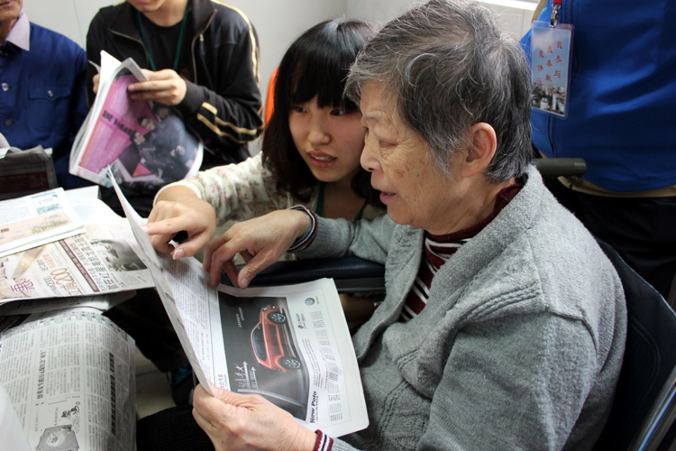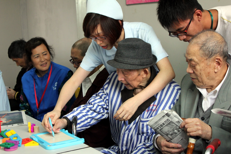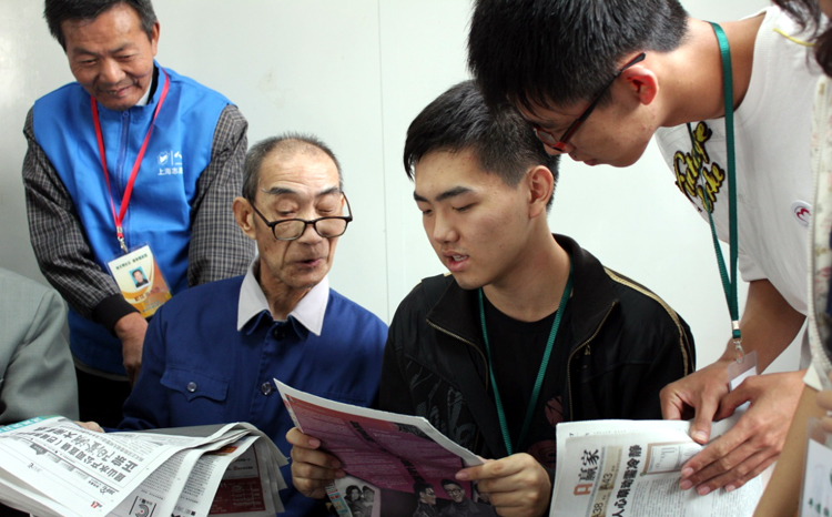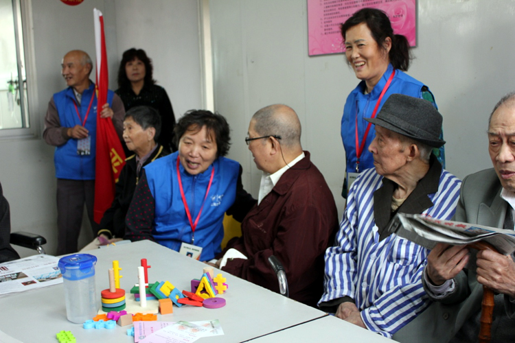 在沪东老年护理院,志愿者在护理人员的指导与帮助下,有的为视力不好的老人们读报,让他们了解时下的新闻;有的与老人拉家常,聆听老一辈年轻时的辉煌;有的为行动不便的老人们喂水喝;还有的跟着老人们一起搭积木、练写字板。看到老人们一个个都露出了笑脸,不禁让每个志愿者感叹夕阳也有其独特的魅力所在。(程 莉 张蓓雯)
