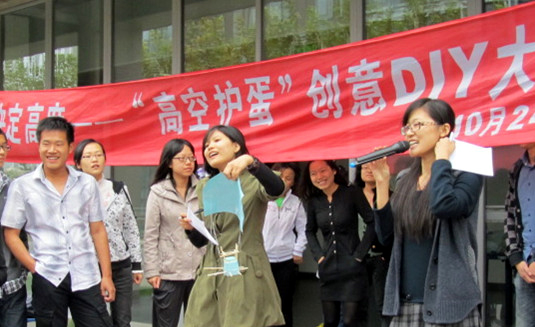 本次“高空护蛋”创意DIY大赛的成功举办,使得同学们在学习之余放松了心情,在欢乐的气氛中加深了友谊,同时充分体现了学生睿智的创新思维以及良好的团队合作能力。(刘晓明)