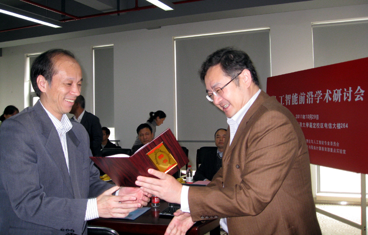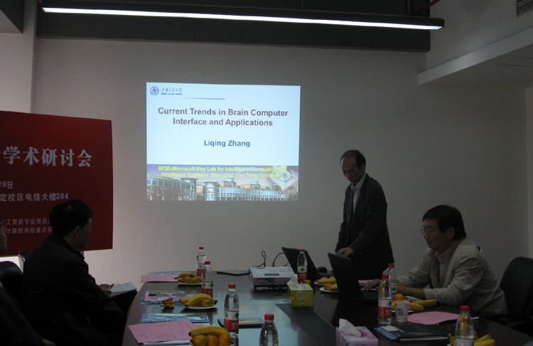 苗夺谦教授就人工智能的实践教学进行了交流;上海交通大学张丽清教授作了“脑机交互技术研究前沿与应用”,复旦大学陈雁秋教授作了“三维复杂运动的感知与理解”的学术报告。