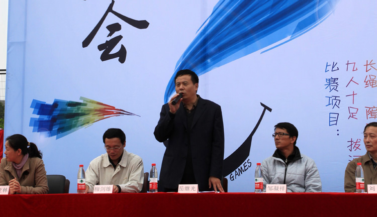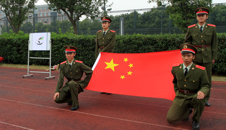 开幕式上,由国防生组成的国旗护卫队护卫国旗庄严入场。嘉定校区党工委副书记岳继光为开幕式致辞;嘉定校区管委办主任柳剑雄宣布本届迷你奥运会开幕。