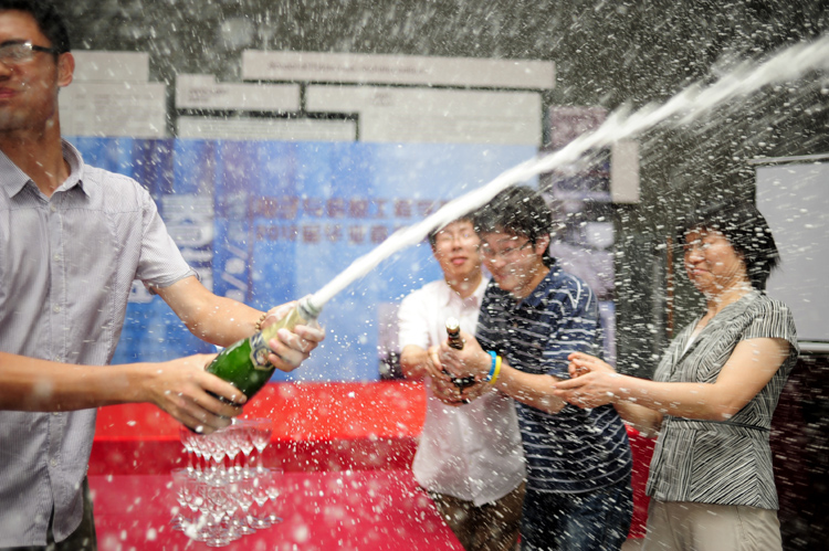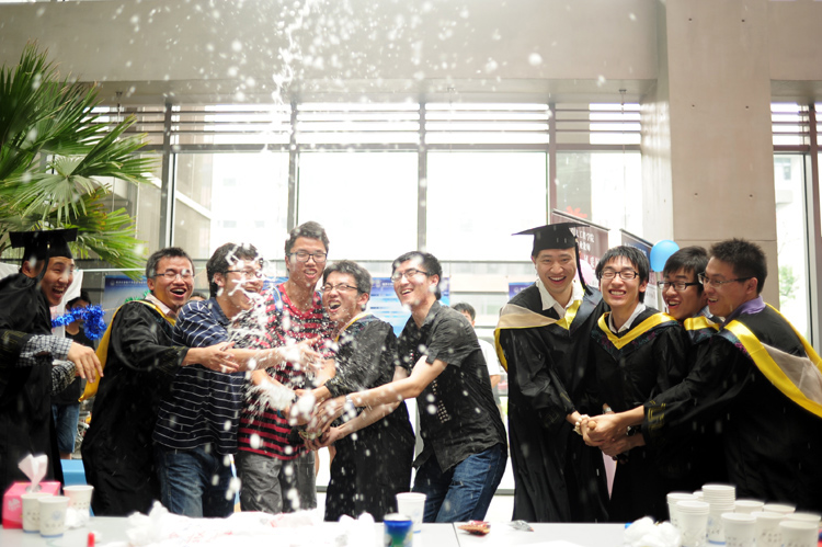 下午,毕业生和部分师生在电信楼一楼大厅欢聚一堂,在钢琴演奏声中,计算机系系主任关佶红教授致辞,随后,学校统战部部长肖辉和毕业班班长代表共同开启香槟,毕业生代表李维丹及毕业班班主任共同切开蛋糕,下午茶活动正式开始。乐队声中,师生们举杯畅饮、畅谈人生、拍照留念。
