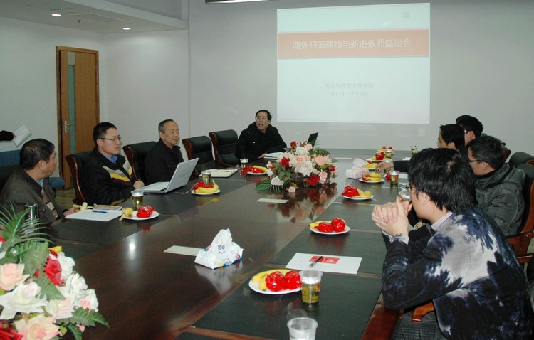 为更好的帮助新进教师熟悉学校及学院的相关政策,以便他们更好更快的发展,日前学院在智信楼(原电信学院大楼)召开海外归国教师及新进教师座谈会。院党委书记童学锋教授、院长陈启军教授、副院长金立军教授、各系(中心)主任及近40位海外归国教师及新进教师参加了此次会议。