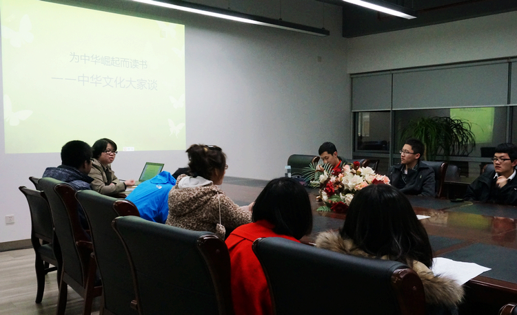 3月21日,院团委在嘉定校区电信大楼305会议室举行了“为中华崛起而读书”的读书活动。活动共吸引了十几位有兴趣的同学参与,大家围绕着中华文化特征展开激烈的讨论。