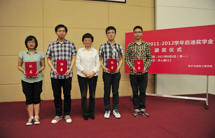 党委书记童学锋介绍了获奖学生情况,他们品学兼优,积极参加各类科技创新活动,并积极为班级、集体、社团贡献自己的力量,为同学们树立了良好的榜样。吴启迪教授亲自为四位获奖学生颁奖并合影留念。