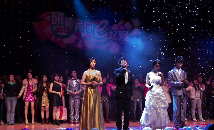 18:30,“研途有你e起爱”2013研究生迎新航班正式起航!开场舞《Sexy back》热情洋溢的青春气息赢得了满堂彩;武术表演《侠客行》在柔与刚中展示了中国武术的无限魅力;教师舞蹈《万物生》让同学们看到了老师活泼可爱的一面;由同学们自编自导自演的歌曲串烧《天才向左,疯子向右》和情景剧《恋爱in济》生动表述了研究生学习和生活中的泪水与欢乐,赢得了全场观众的共鸣;吉他和钢琴的完美合奏《call me maybe》&《直到世界尽头》则展示了电信人多才多艺的一面……。