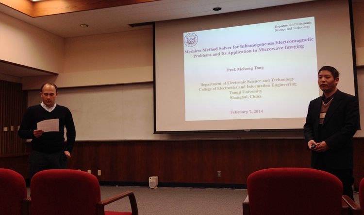 电子科学与技术系主任童美松教授访问了该系及其实验室,双方就互相感兴趣的前沿课题研究进行了深度交流,并就开展有效的国际合作、派遣交换学生和青年教师去其实验室进修学习、推荐优秀中国留学生毕业后来我校任教等达成了一致。期间,童美松教授受邀为该系和Center for Magnetic Recording Research (磁记录研究中心)联合举办的系列讲座作了一场公开学术报告,报告就其最近提出的、用于非均匀和各项异性材料复杂电磁场问题分析的新颖无网格方法作了详细讲解,引起了学生和教授的强烈兴趣。报告结束后感兴趣的学生和教授与其进行了长时间的、更加广泛和深入的讨论和交流。