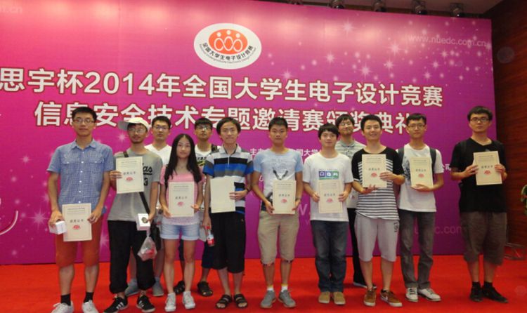 计算机系程久军老师的指导下,常成、覃文杰、张静轩的参赛作品“基于数字水印与RFID技术的标签防伪验证系统”获TI平台二等奖;樊骥骅、于宗坤、施磊的参赛作品“基于用户签名行为习惯的身份认证系统”获XILINX平台二等奖;秦鹏宇、朱兆辉、谢鸣元的参赛作品“基于图片加密技术的云用户数据安全防护系统”获软件1组三等奖;张菡、张鹏宇、阮剑鸿的参赛作品“移动蜂窝网络环境下的短信加密系统”获软件2组三等奖。