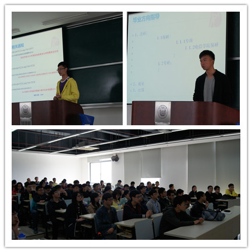 即将毕业的2011级各专业优秀学生为大三的同学分享保研、考研、就业和出国的经历,并为大三的同学解答疑惑,指点方向。