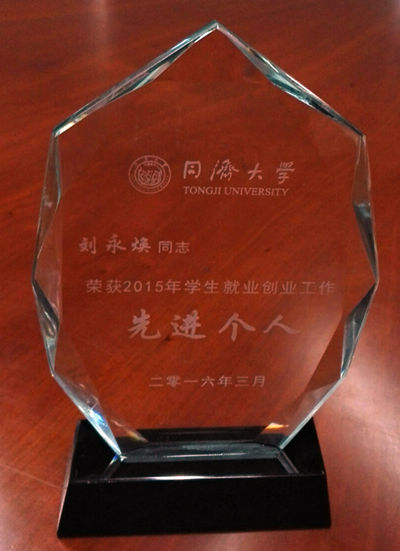 2015年学生就业创业工作集体单项奖”,刘永焕老师工作踏实努力,勇于实践和探索,不完善和创新工作思路,提升业务素质与工作水平,获得“西瓜视频