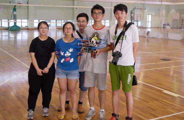 自动化、电气工程及中意学院电子信息与技术专业,在创新基地蒋磊老师的指导下,经过数月的训练准备,完成了基于机器视觉的自主导航四旋翼无人机。该无人机能够自主识别摄像机视野中的图形地标,自主规划飞行线路,完成竞赛规定的飞行动作。本作品采用Intel高性能处理器为计算核心,运用机器视觉算法识别的视野图像中的地标形状,并结合机载惯性导航模块规划飞行线路;无人机飞行姿态控制模块为基于TI高性能微控制器自主开发的软硬件部件,能够采集融合多种传感器信号,实现了稳定的飞行姿态控制。(蒋磊)