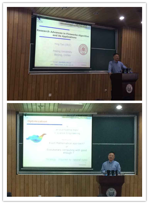 汪镭教授邀请,国际期刊IJCPR主编、IEEE Transactions on Cybernetics副主编北京大学谭英教授来到嘉定校区,在智信馆117报告厅作了题为“新型烟花算法研究及其最新进展”的学术报告。