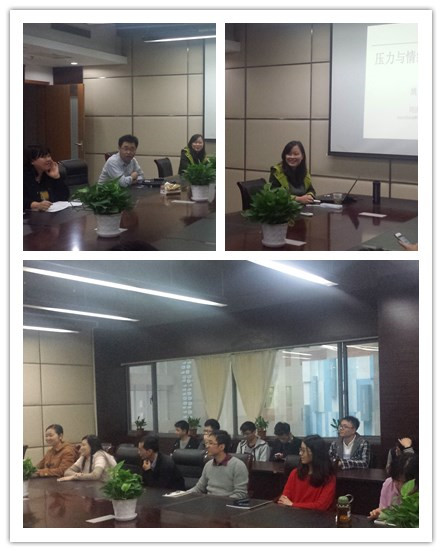 党委副书记向阳代表学院师生对姚玉红老师的到来表示欢迎,他希望在场师生透过这样的学习渠道,能够认识压力、学着适当排解压力、管理自身情绪,从而进一步减轻压力,更好地工作和生活。讲座中,姚老师透过“压力怎么来”、“压力过大的情绪标准”及“情绪调节原理”三方面带领大家走进这个让人关注、却又望而却步、不敢触碰的主题。首先,她通过生动的例子、幽默的语言指出压力无处不在,人们日常要面对来自工作、生活、孤独感、过往生活积累所带来的种种压力,并表示压力本身并无好坏,如何解决问题、疏导压力才是关键。其次,她指出大家可以透过肢体、语言来判定压力和情绪反应程度,并举例讲解“安慰反应”、“冻结反应”、“语言的多个层面关系”等内容,使在场师生对压力过大的情绪标准有了更深刻的了解。最后,她向大家介绍了很实用的情绪调节原理:要允许情绪的开始,学习平衡情绪和理智,学习有效的情绪处理方法。整个讲座的气氛轻松愉悦,现场互动热烈,通过姚老师生动、通俗的讲解,在场师生对如何更好的管理自身情绪、疏导压力有了进一步了解。