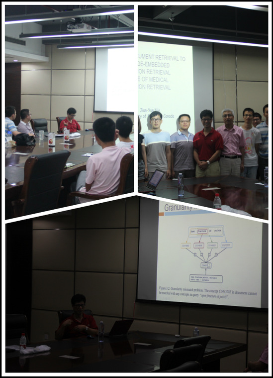 苗夺谦教授邀请,信息检索领域国际著名学者、加拿大蒙特利尔大学聂建云教授在智信馆305会议室作了题为“From document retrieval to knowledge-embedded information retrieval – the case of medical information retrieval”的学术报告,这也是计算机科学与技术系智信讲坛第107期内容。