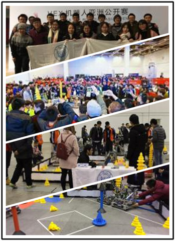 首次派出代表队参加在苏州国际博览中心举行的2017-2018赛季VEX机器人亚洲公开赛。本次赛事我校共派出3支队伍参赛,经过4天激烈的角逐,TJRG1、TJRG2代表队闯入八强获得一等奖,TJRG3作为大学组唯一一支全女生队伍,获得二等奖。我校还获得单项奖中的“活力奖”。