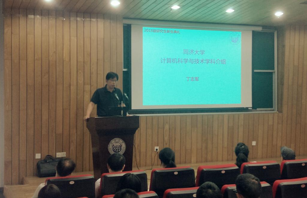 的历史沿革、专业变迁、学科优势,将“同心同德同舟辑,济人济事济天下”的同济精神和与祖国同行,以科教济世的家国情怀娓娓道来。其次全面介绍了计算机系和学科情况,从学科发展、师资队伍、科学基地、科研成果和国际交流与合作等方面全面介绍了学科情况;最后他提出明确目标、扎实研究、注重时间管理、尊重导师等四条建议,希望同学们在研究生阶段能够把握时间,为今后的理想与人生目标打下坚实的基础。