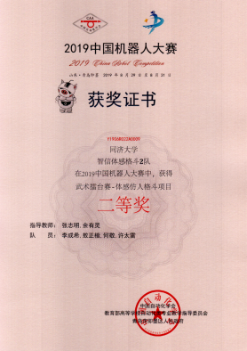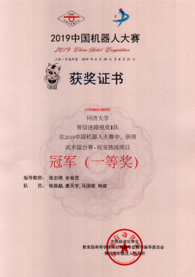 、山东大学、北京理工大学等全国知名高校在内的207所学校,共计1109支队伍参加,参赛人数超过3800人。在校本科生院的支持下,学院选拔同学组成四支队伍参赛,其中:由控制科学与工程系张志明老师和余有灵老师指导,全国大学生智能汽车竞赛实验室选拔同学组成三支队伍,分别参加“武术擂台-视觉挑战”、“武术擂台-体感仿人格斗”、“助老服务-助老环境与安全服务”等项目,经过小组赛、淘汰赛等多轮角逐后,表现出色,获得一项冠军(一等奖)、一项亚军(一等奖)与一项二等奖;由学院实验中心刘润田老师和徐志宇老师指导的一支队伍,参加“医疗机器人-骨科手术机器人”项目,成绩优异,获得一项亚军。
