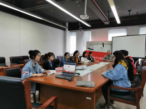 2019年10月23日中午12:30,电气信通联合总支研究生第二党支部于电信楼384室开展了主题教育推进工作,电气信通联合总支书记金立军老师联系研究生支部,参加了本次的主题教育推进工作,第二党支部所有党员及入党积极分子出席了会议,会议由电气信通联合总支研究生第二党支部书记陆坡燕同志主持。会上,金老师以三个主题讲了党课,分别为: 《习近平总书记在2019年秋季学期中央党校(国家行政学院)中青年干部培训班开班式上的重要讲话》、《贯彻落实习近平新时代中国特色社会主义思想在改革发展稳定中攻坚克难案例提要》以及《与祖国同行以科教济世开启建设中国特色世界一流大学新征程》(西瓜视频
