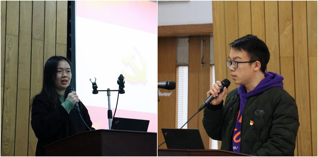 预备党员代表卢诗洁发言 党支部书记代表吴全鹏发言