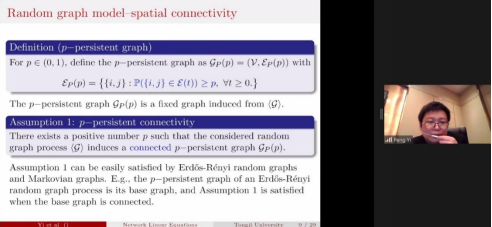 的衣鹏研究员作题为“Distributed Linear Equationsover Random Networks”的报告,研究混合随机网络中分布式线性代数方程问题并建立指数收敛分析框架。
