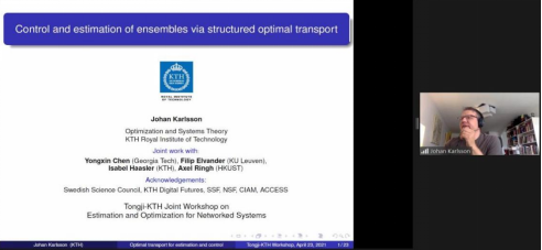 瑞典皇家理工学院的副教授Johan Karlsson作题为“Control and Estimation of Ensembles via Structured Optimal Transport”的报告。系统概述数学中经典的最优运输问题,并介绍如何将其用于解决状态估计和集成控制问题。